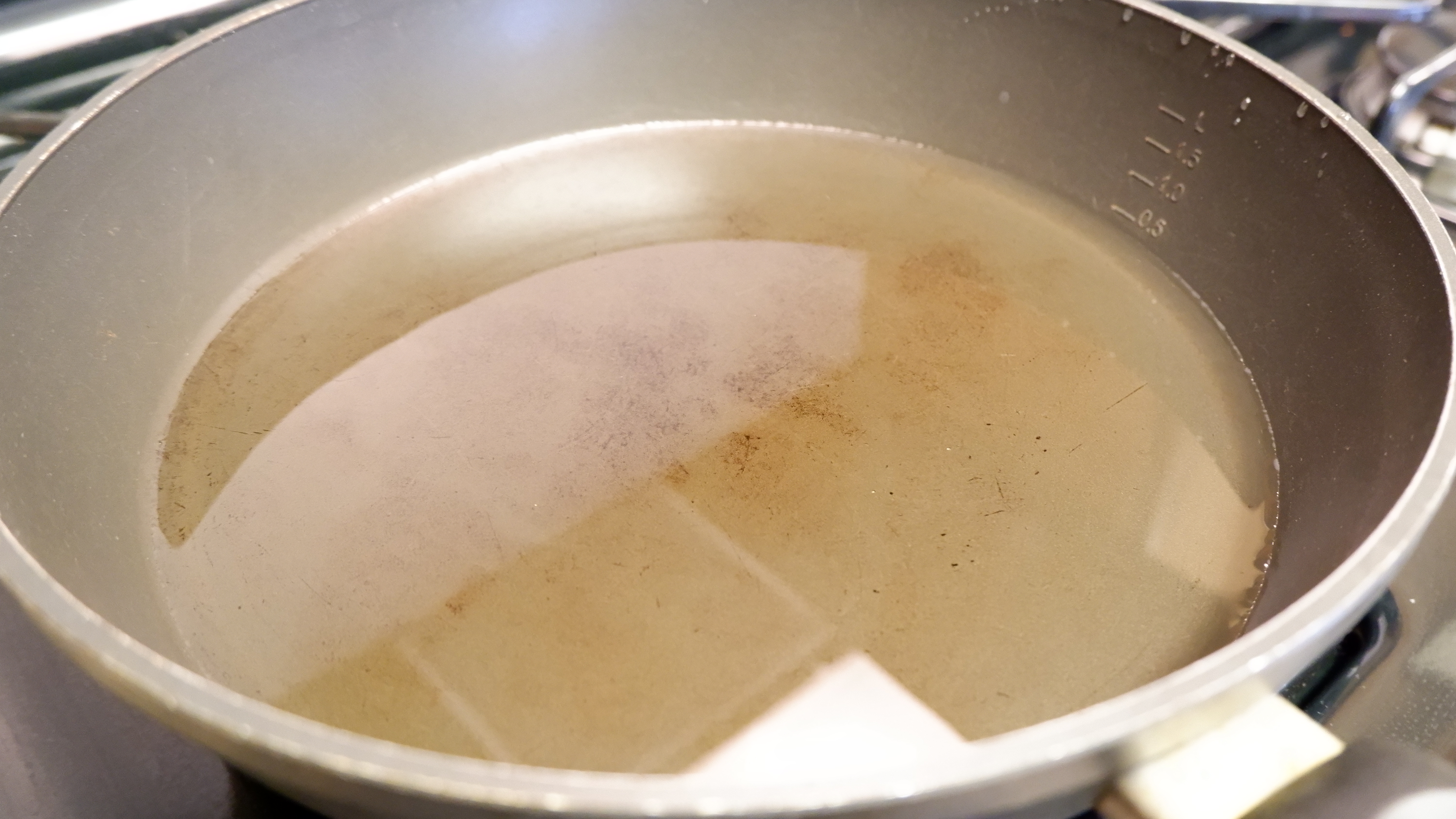 9. 그다음 이쁘게 말은 스프링롤을 튀길 차례인데 프라이팬 또는 웍에 식용유를 충분히 부어주고 중불에 달궈주세요 , (보통 스프링롤이 완전히 잠길정도로 식용유를 부어주지만 전 식용유를 재사용하지 않는 편이라 조금만 부어줬어요!)