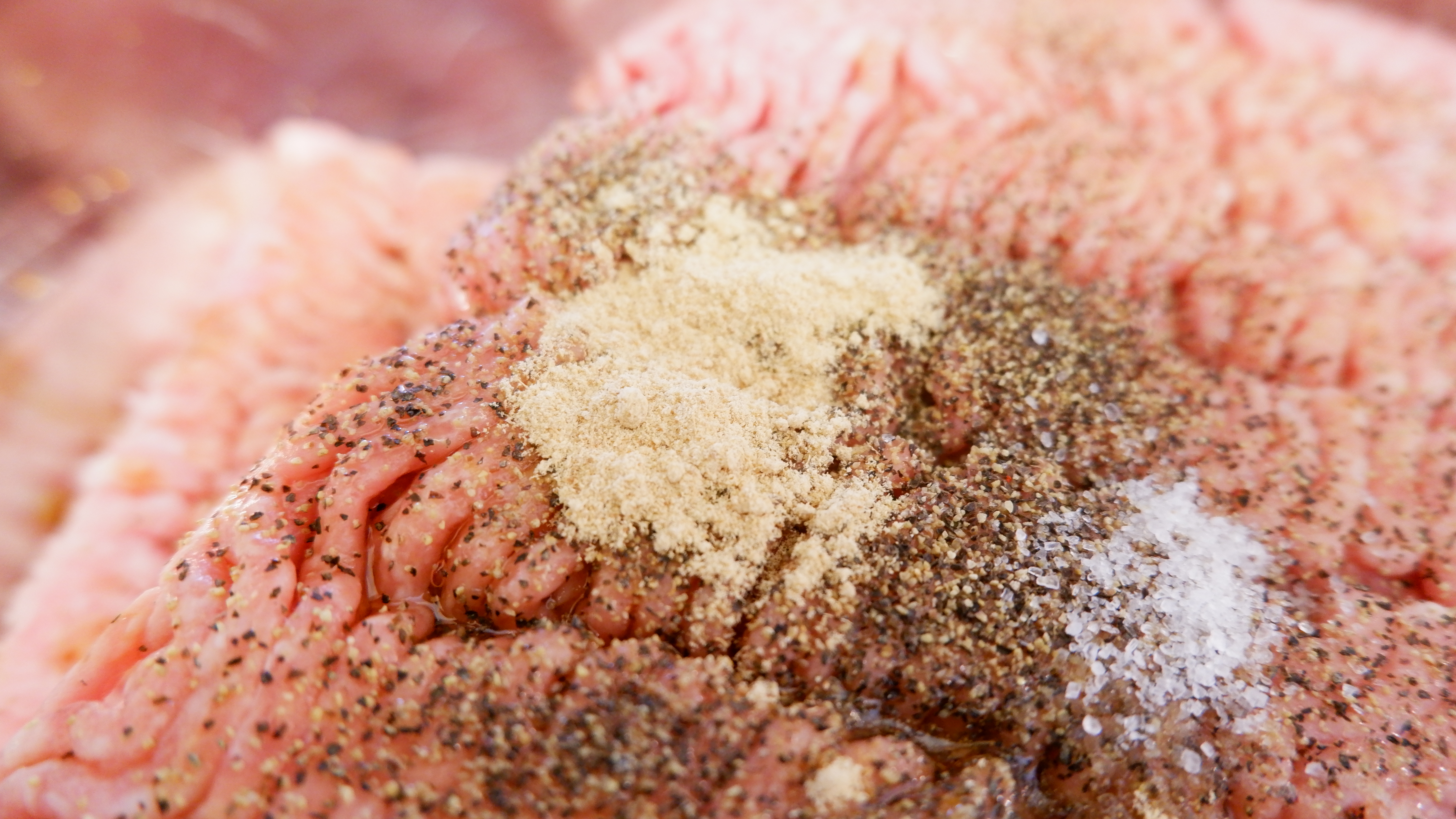 1. 먼저 믹싱볼에 간 돼지고기 2kg를 넣고 후추 1 티스푼 , 생강가루 1티스푼 , 간장 5큰술 , 참기름 1큰술 , 소금 1큰술을 넣은 후 잘 섞어주세요!
