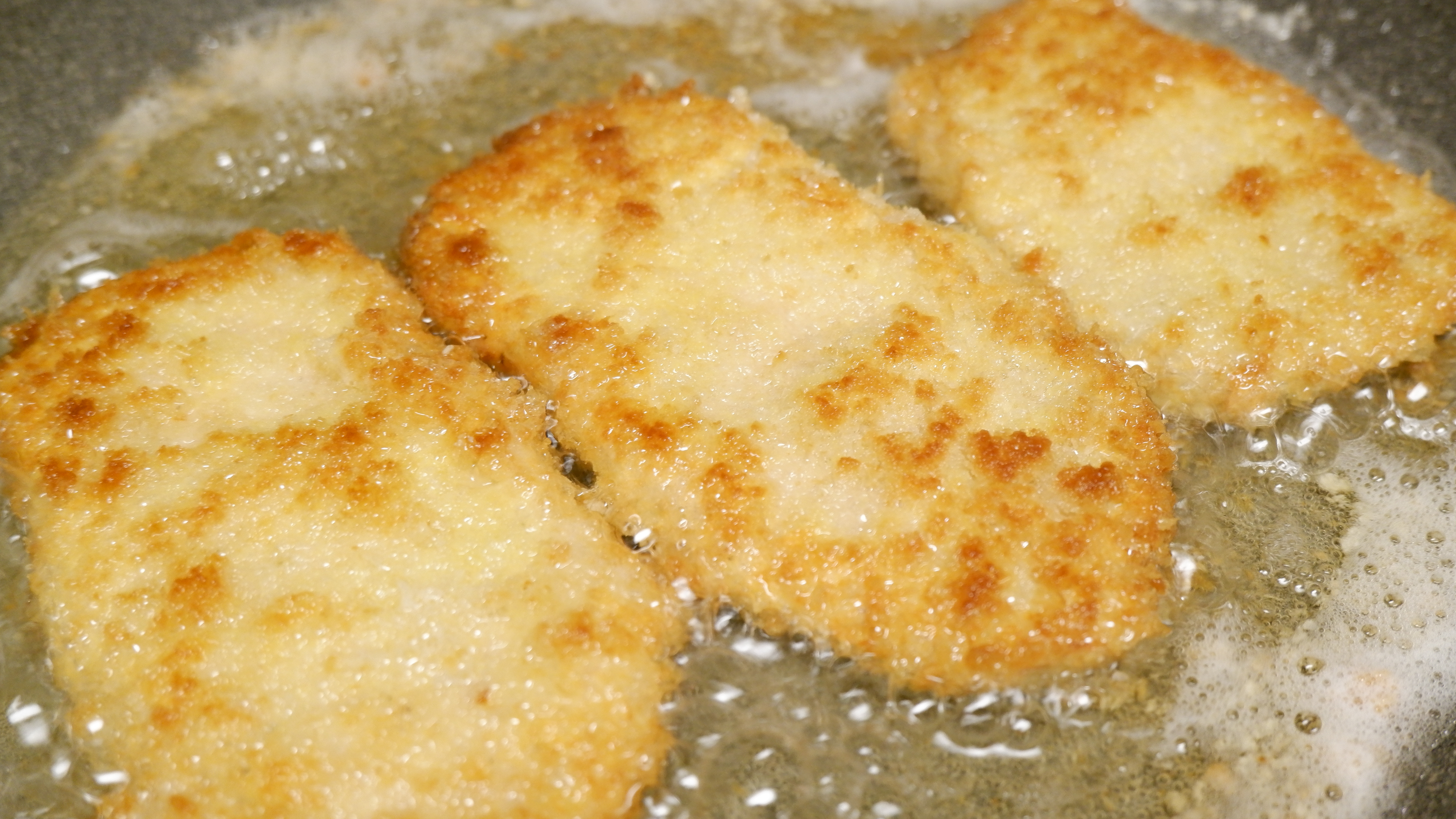 8. 돈가스를 앞뒤로 노릇노릇하게 튀겨주세요~ 안까지 잘 익게 튀기는데 대략 7~8분 정도 걸려요!