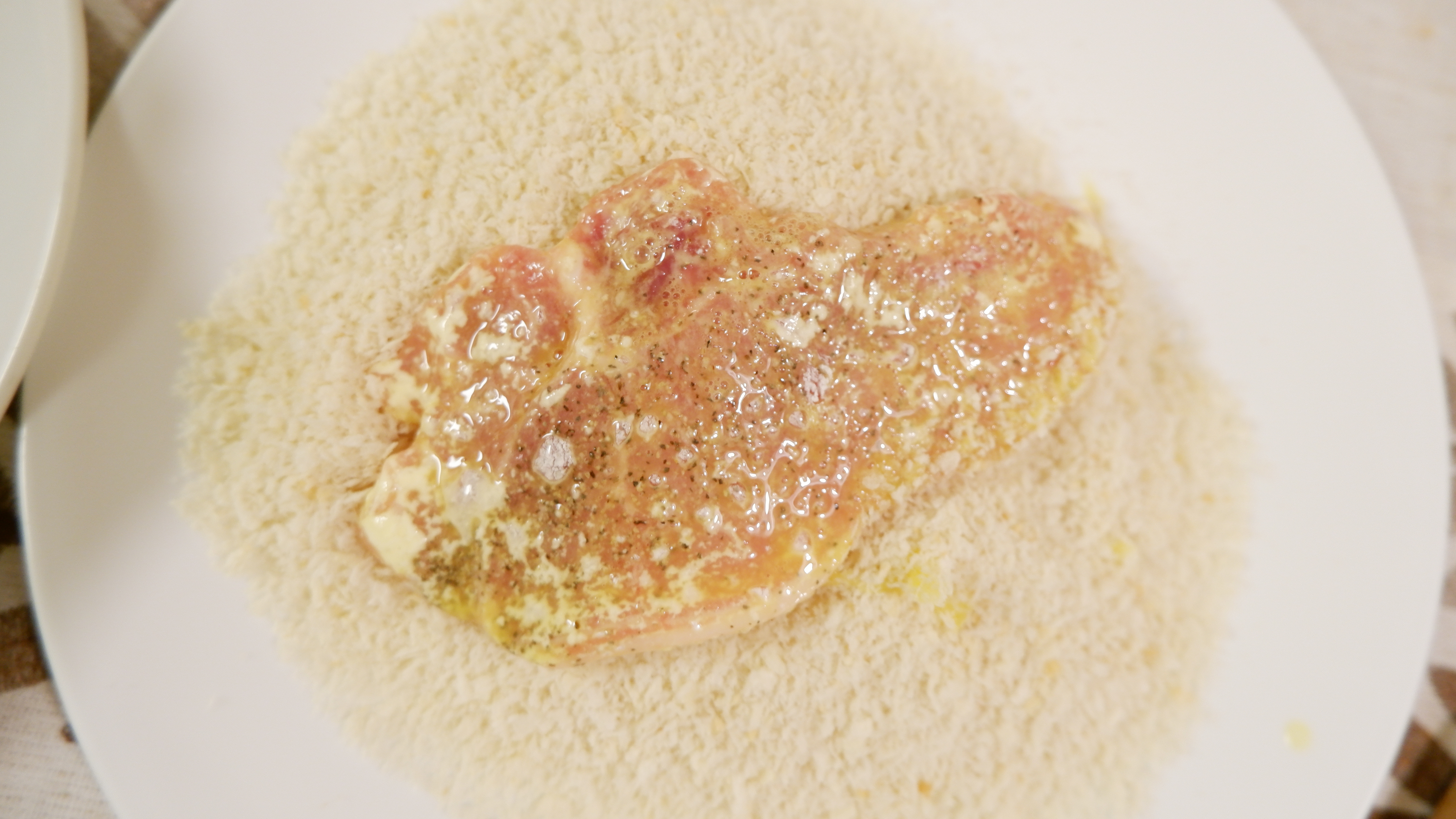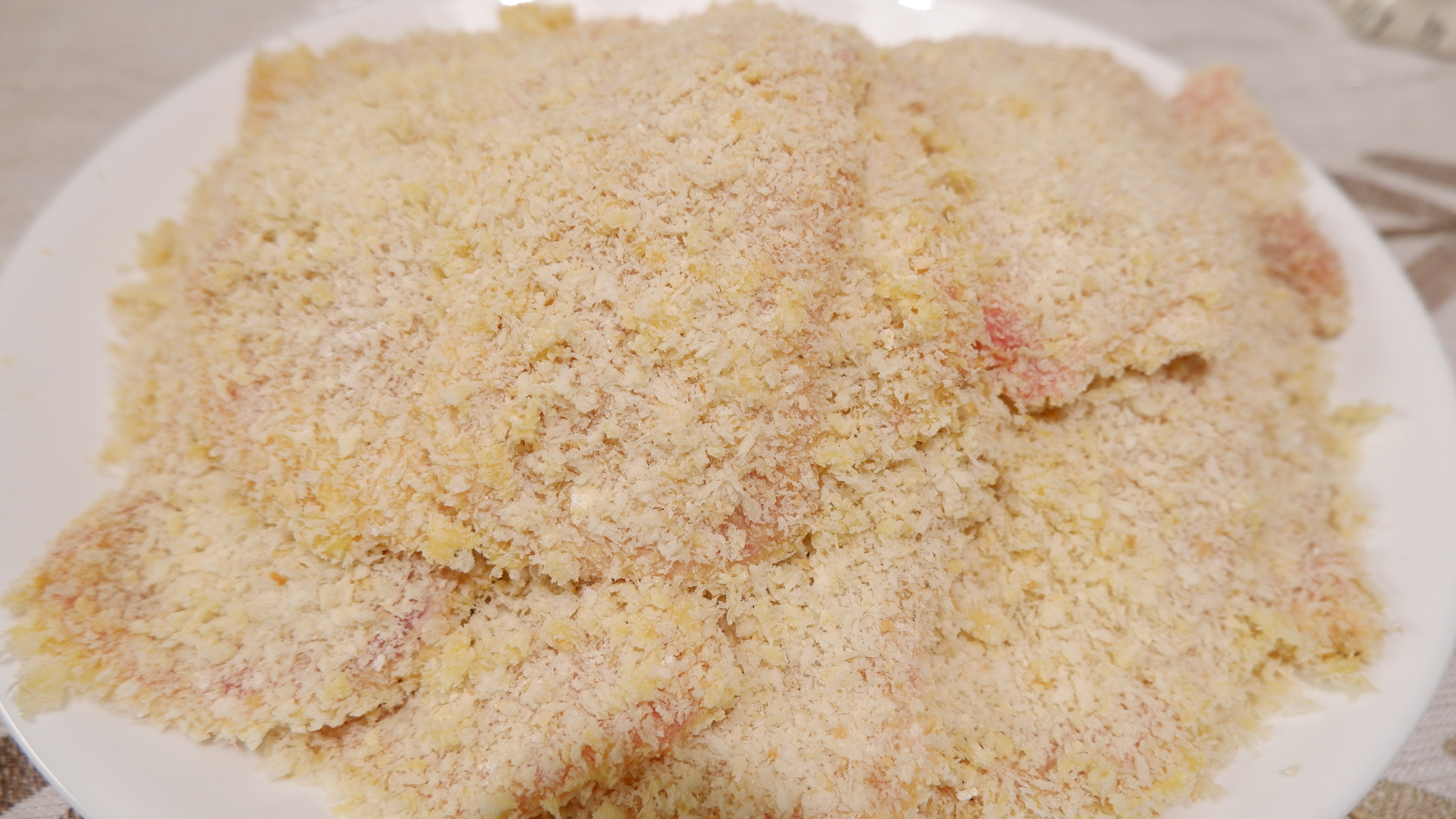 밀가루를 앞뒤로 꾹꾹 눌러 묻힌 후 톡톡 털어내고 계란물을 입혀주고 그다음 빵가루를 앞뒤로 꾹꾹 눌러 골고루 묻혀줍니다.