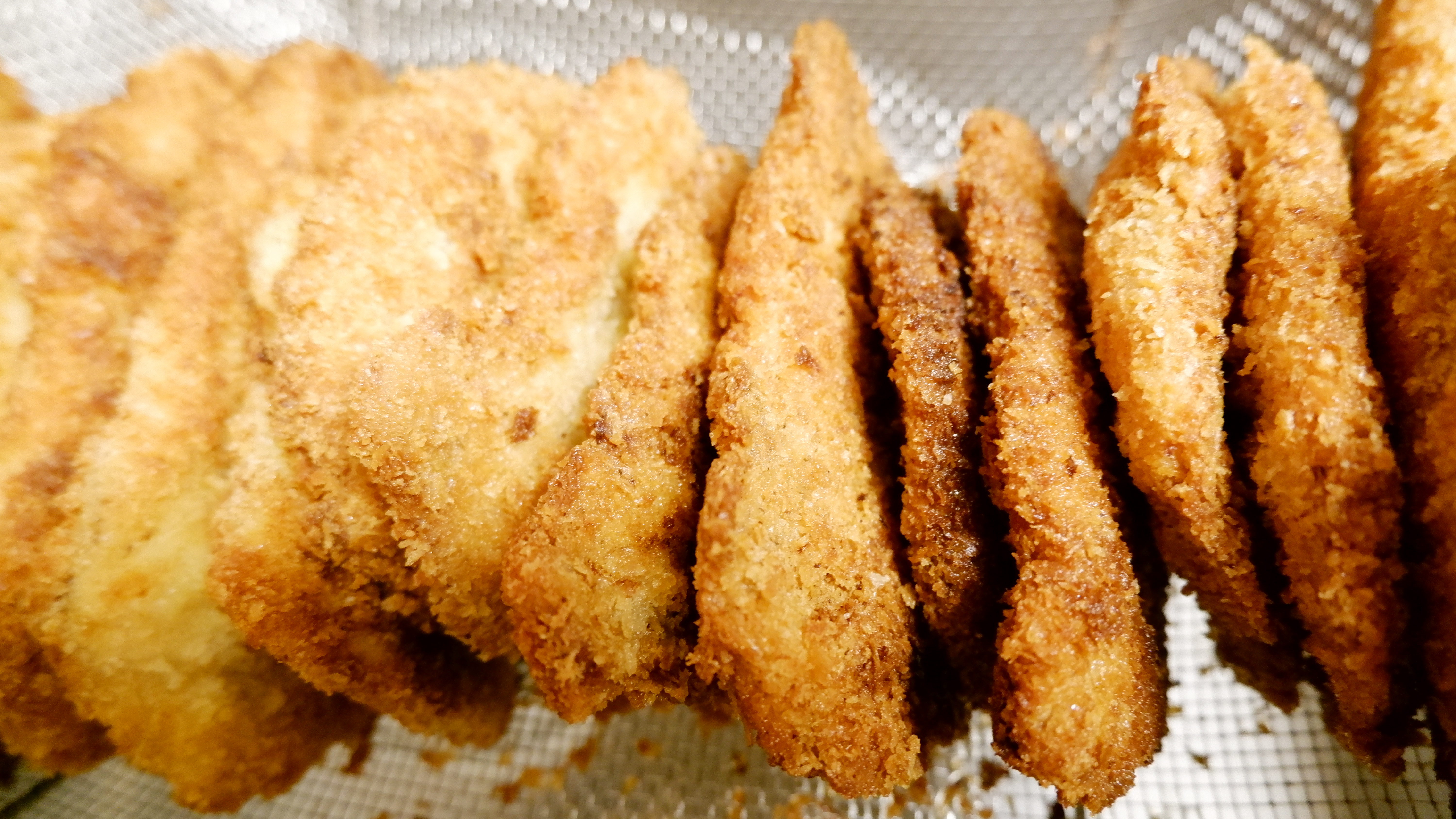 돈가스를 먹을 만큼만 튀기고 소분해서 냉동 보관해도 되지만 전 먹을 때마다 튀기고 기름을 사용하고 처리하는 게 싫어서 튀길때 한번에 다 튀기는 편이에요~ 많은 양을 한 번에 튀길 때는 기름이 잘 빠질 수 있도록 채반에 받쳐 세워두면 됩니다!