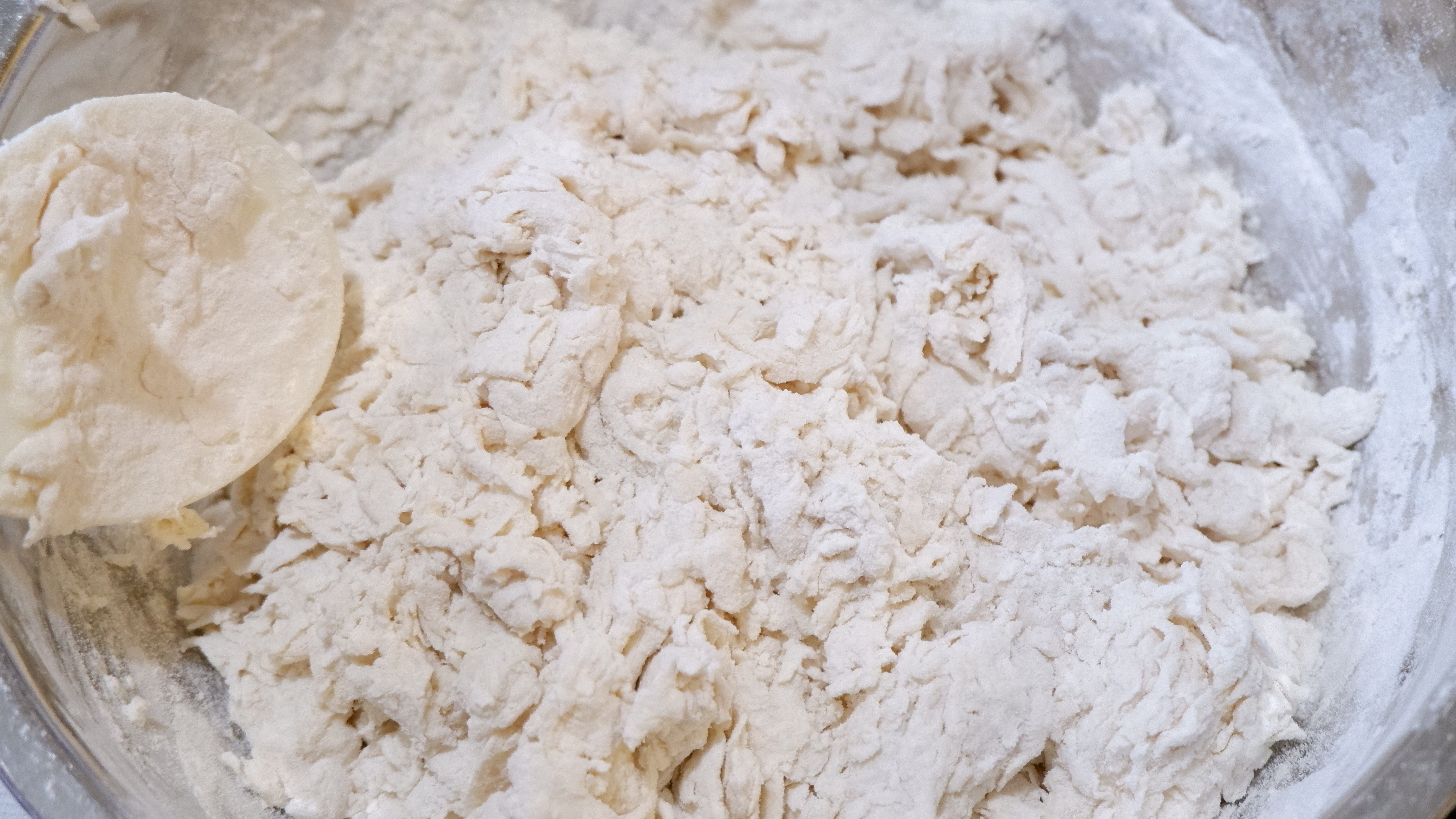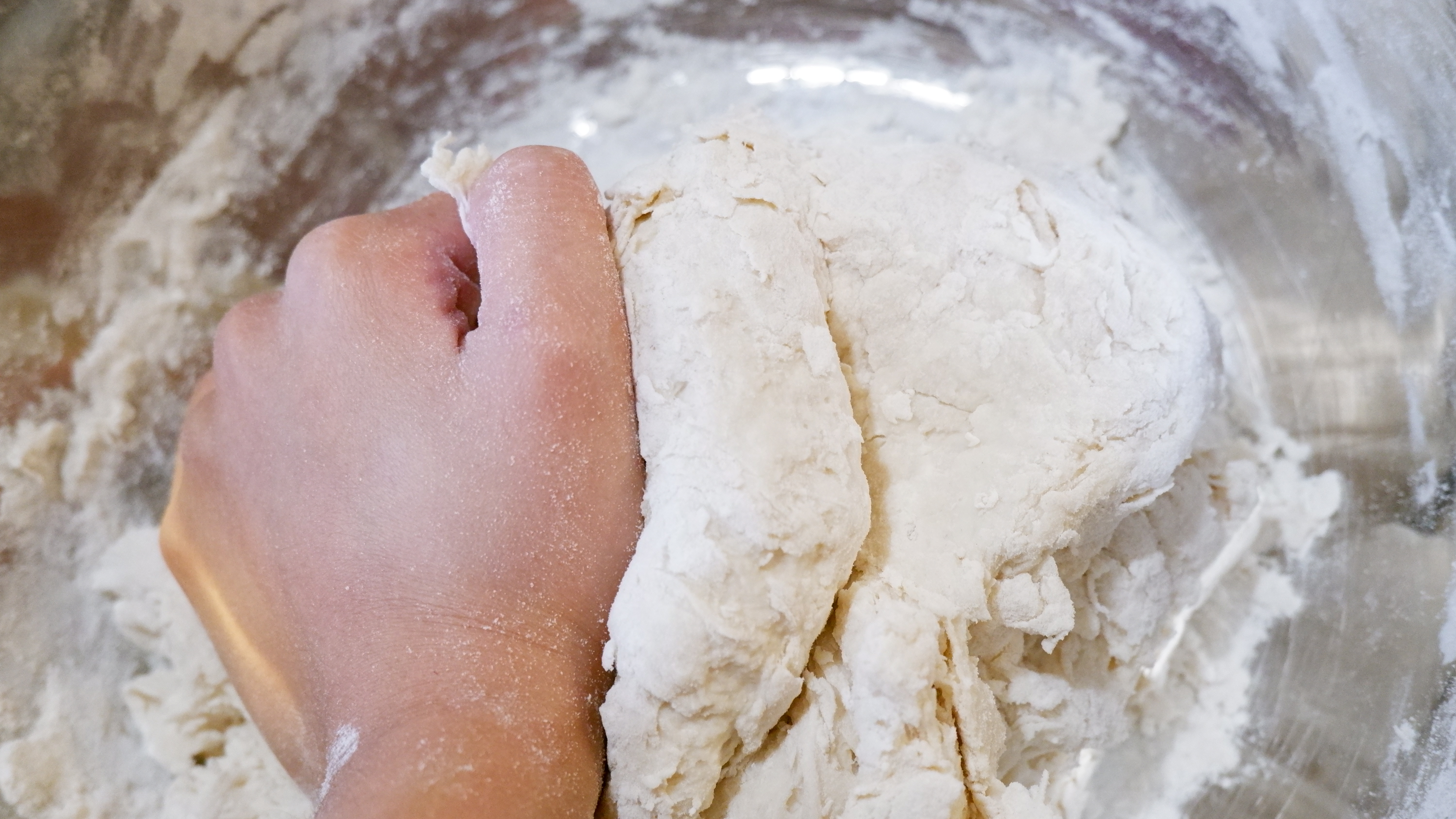 2. 밀가루가 잘 뭉쳐다면 손으로 열심히 치대면서 한 덩어리로 만들어줍니다~ 치대면 치댈수록 반죽은 더 쫄깃해져요~
