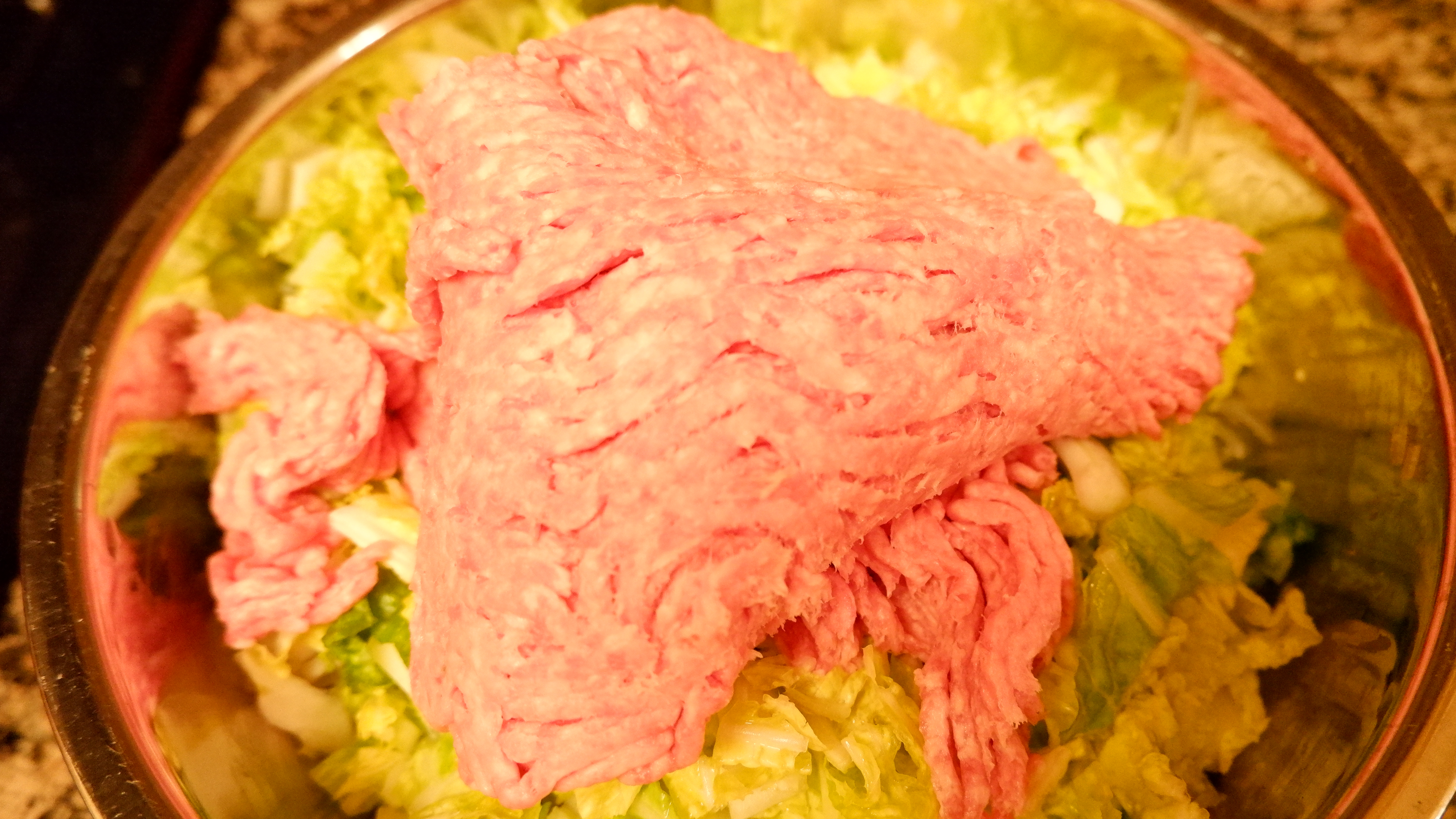 필요한 재료 : 돼지고기 다짐육 1kg , 숙주 300g , 알배추 1/2통 , 당면 100g , 계란 3개 , 두부 두 모 , 대파 1대