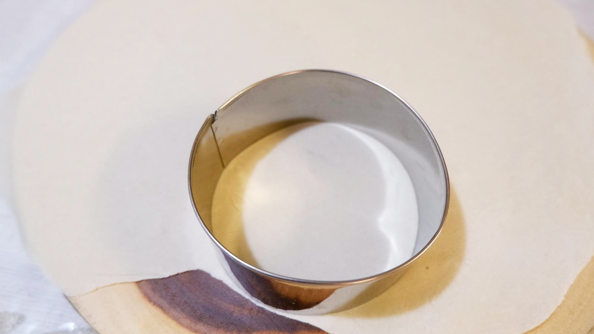 5. 그다음 만두피 틀이나 밥그릇 (스텐 밥그릇이면 더 좋아요!)으로 만두피를 만들어줍니다~ 틀을 찍고 남은 반죽은 다시 뭉쳐서 만들어 주면 됩니다!
