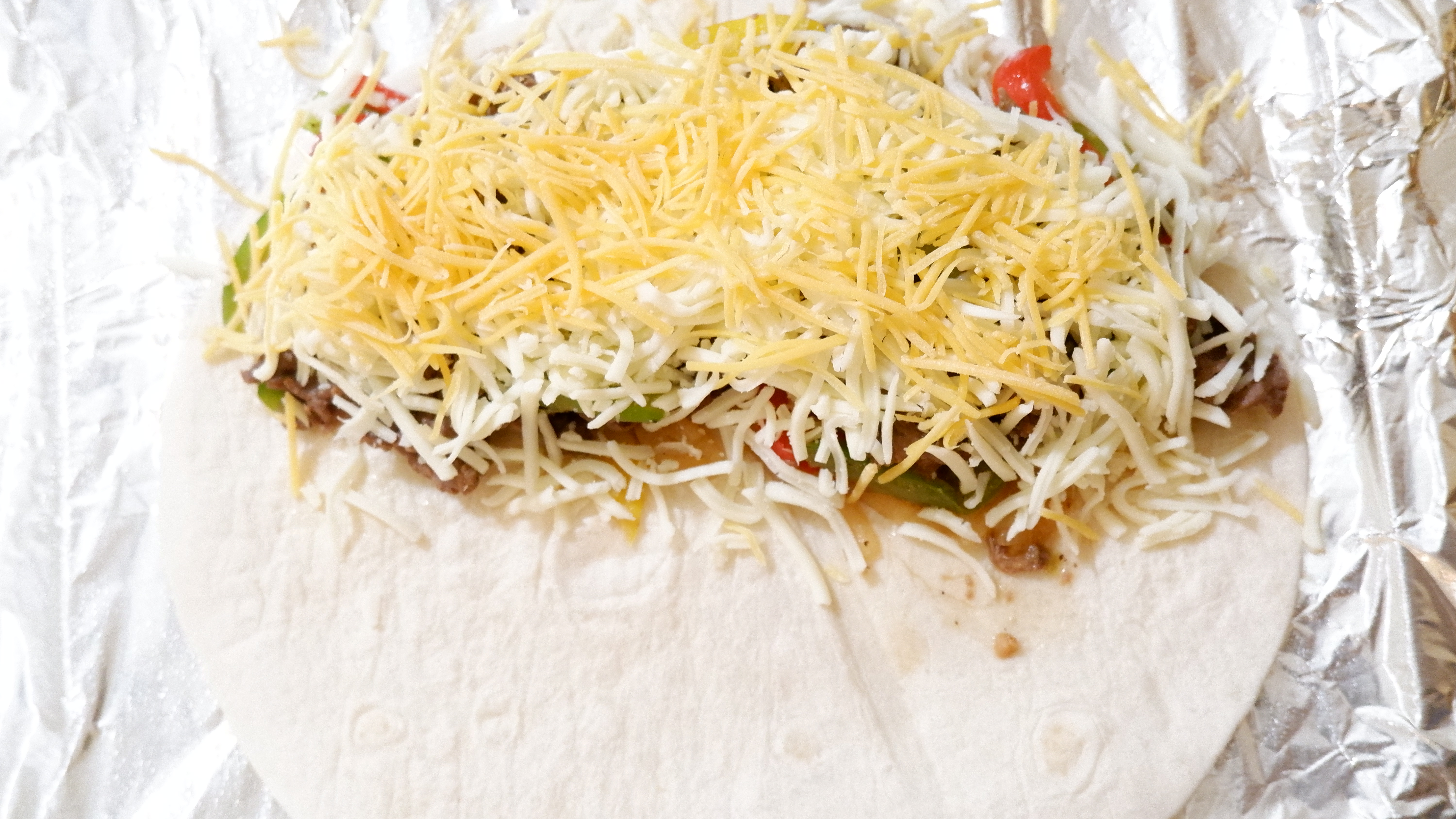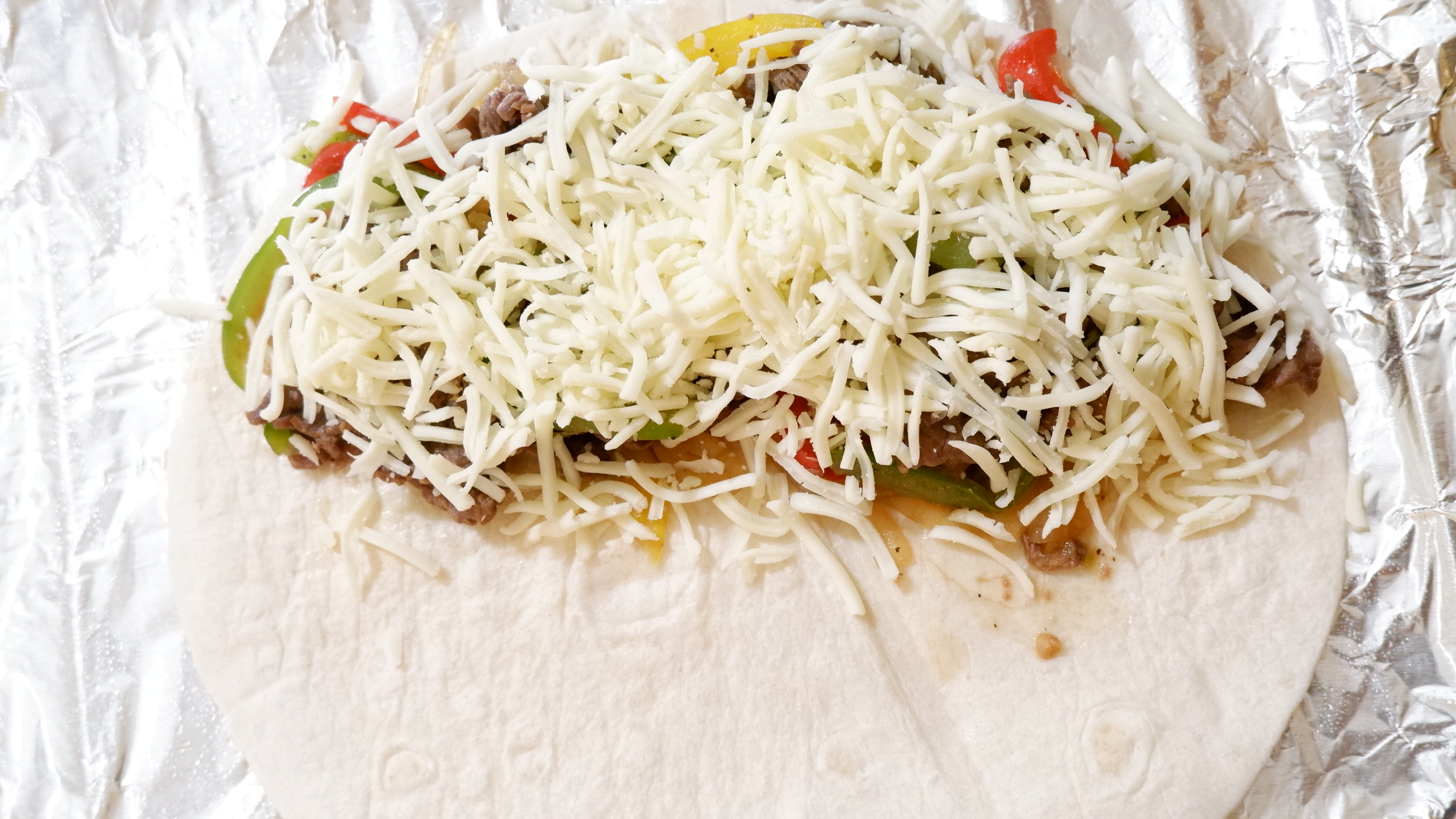 5. 불고기가 완성 됬다면 그냥 먹어도 맛있지만! 또띠아 반에 불고기를 올리고 그 위에 모차렐라 치즈를 취향껏 뿌려주세요! 전 치즈를 워낙 좋아해서 모차렐라 치즈와 체다 치즈를 양껏 뿌려줬어요!
