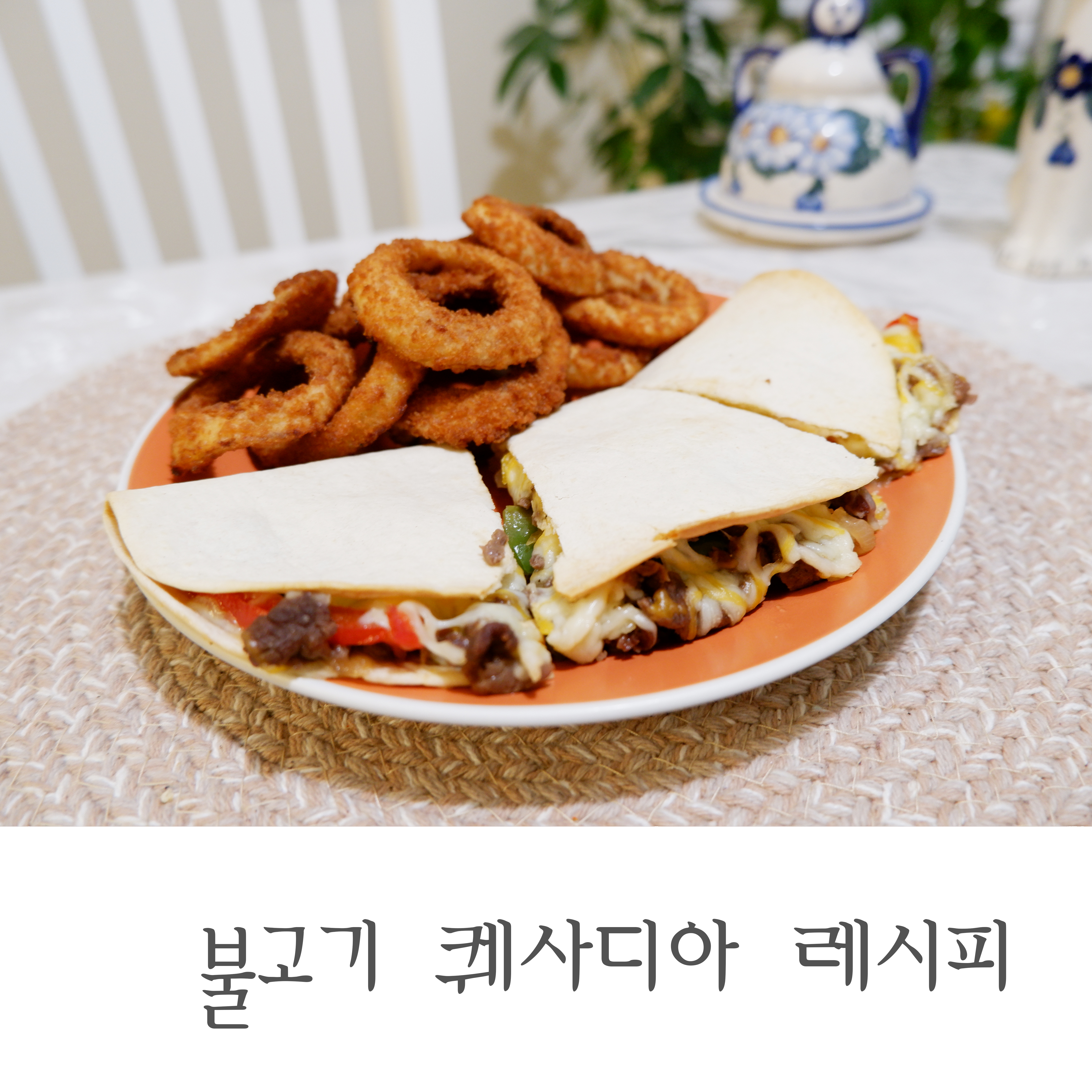 자 이번엔 한국인 입맛에 너무나도 잘 맞는 불고기 퀘사디아 레시피를 가지고 와봤어요~ 만드는 방법도 너무 쉽고 맛 또한 좋아 남녀노소 누구나 즐길 수 있는 음식! 불고기 퀘사디아 만드는 법 소개해드릴게요!