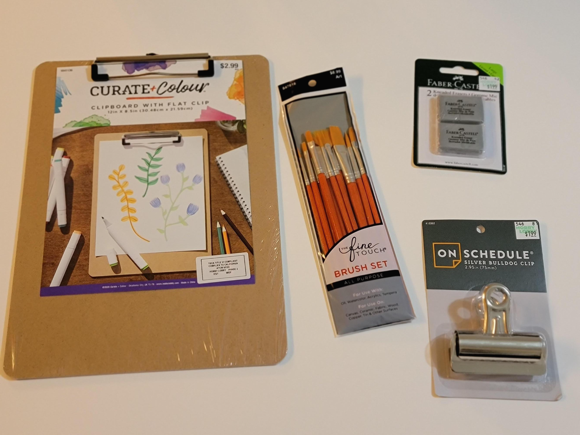 구경하러 갔다가 파버카스텔 지우개 2개입 (1.99달러) , 클립(1.99달러) , 클립 보드(2.99달러) , Fine touch 붓 세트 (4.49달러 50프로 할인 받음) , 아르쉬지 300g 중목 2절지( 7.99달러) 이렇게 구매를 해왔는데 현재 너무 잘 사용하고 있어요~ >< 포스팅을 하면서 못 봤던 상품들이 많이 보여 다음에 가면 필요한 제품들을 더 구매해와야겠어요~