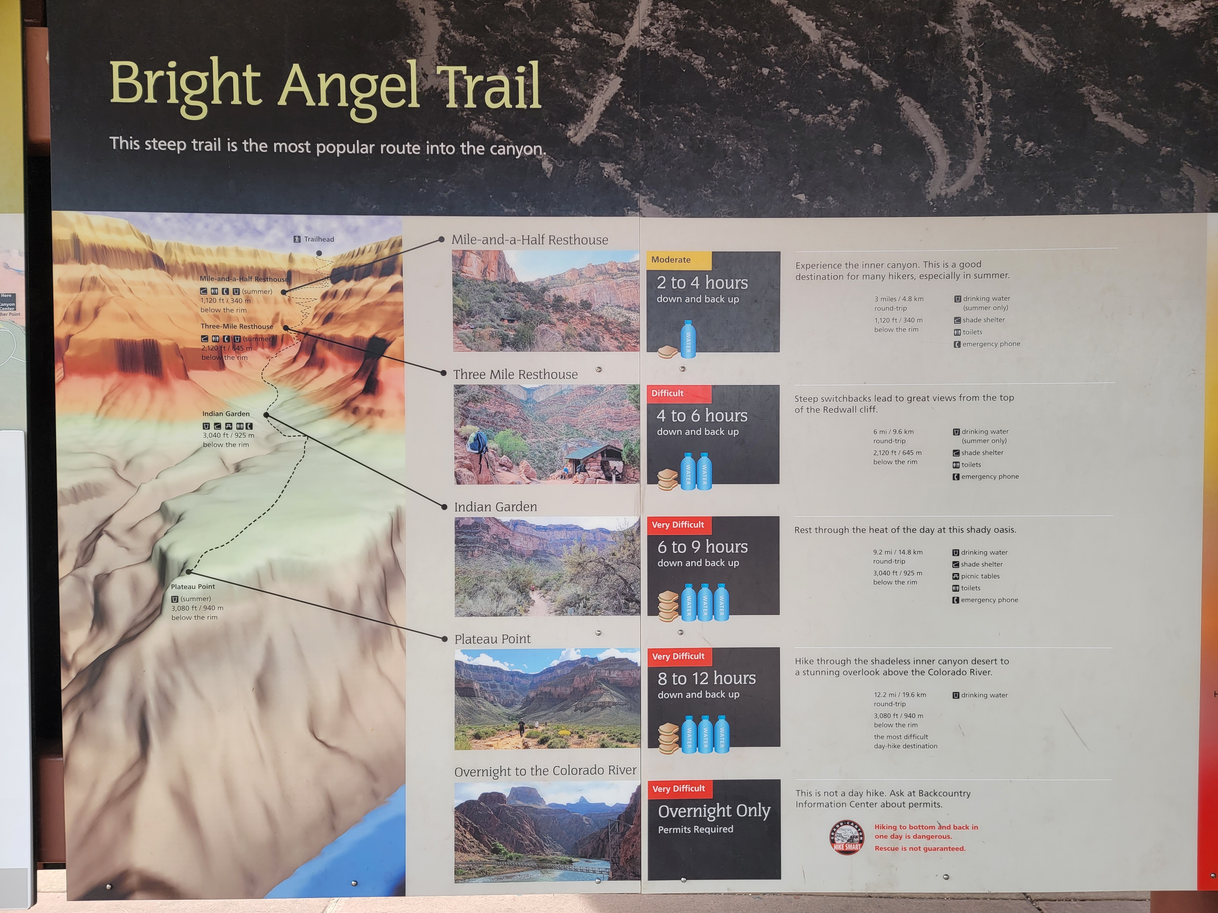저희 목표는 Hopi point 였으나 ㅋㅋ 브라이트 엔젤 트레일 헤드까지 5시간 이상 소요해서 방문객 센터까지 다시 돌아가야 했기 때문에 어두워지기전에 여기서 포기 하고 다시 오던 길로 걸어갔습니다.