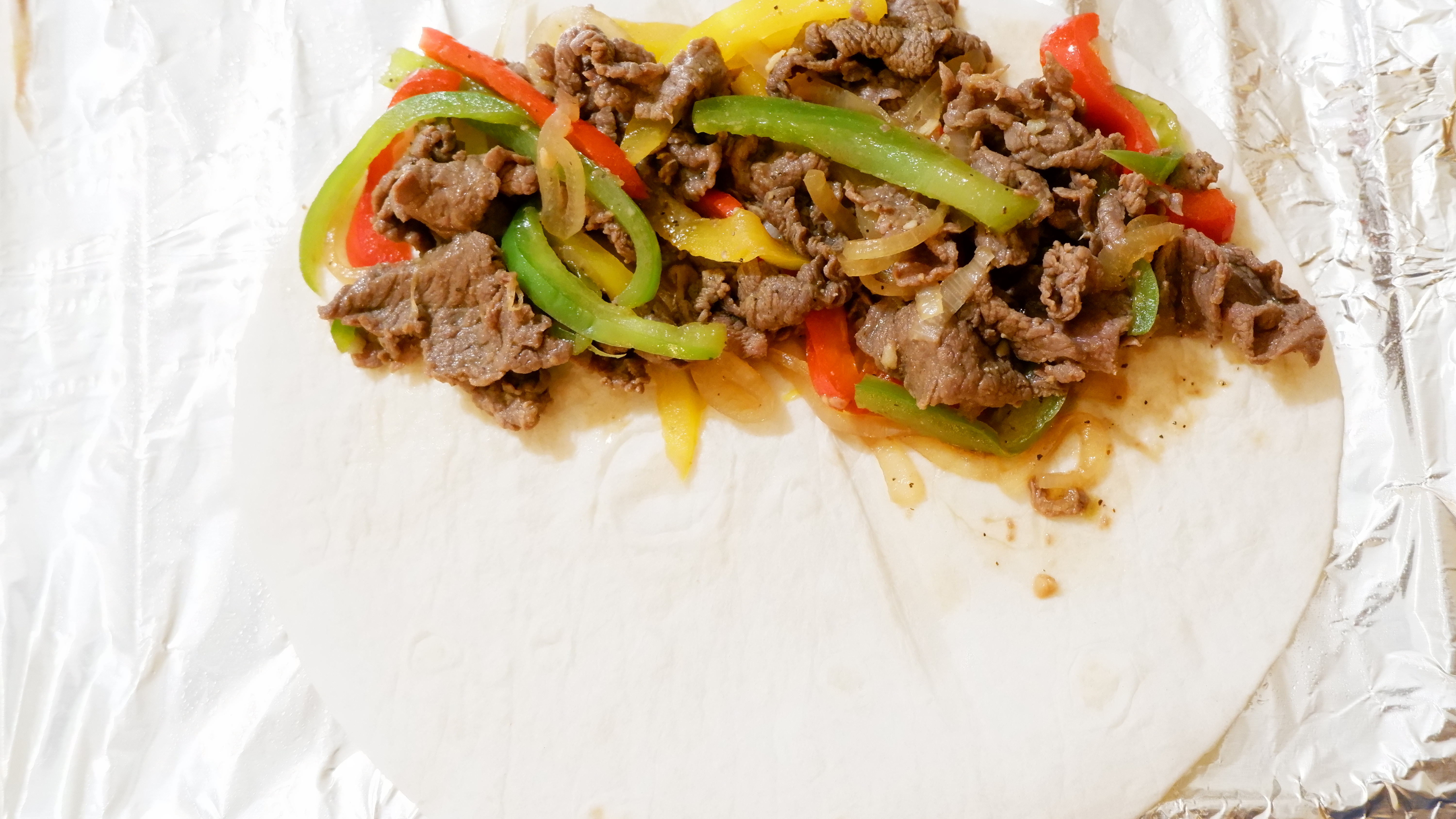 필요한 재료 : 소불고기용 고기 500g , 양파 1/2개 , 피망 1개 반 , 모차렐라 치즈 , 또띠아