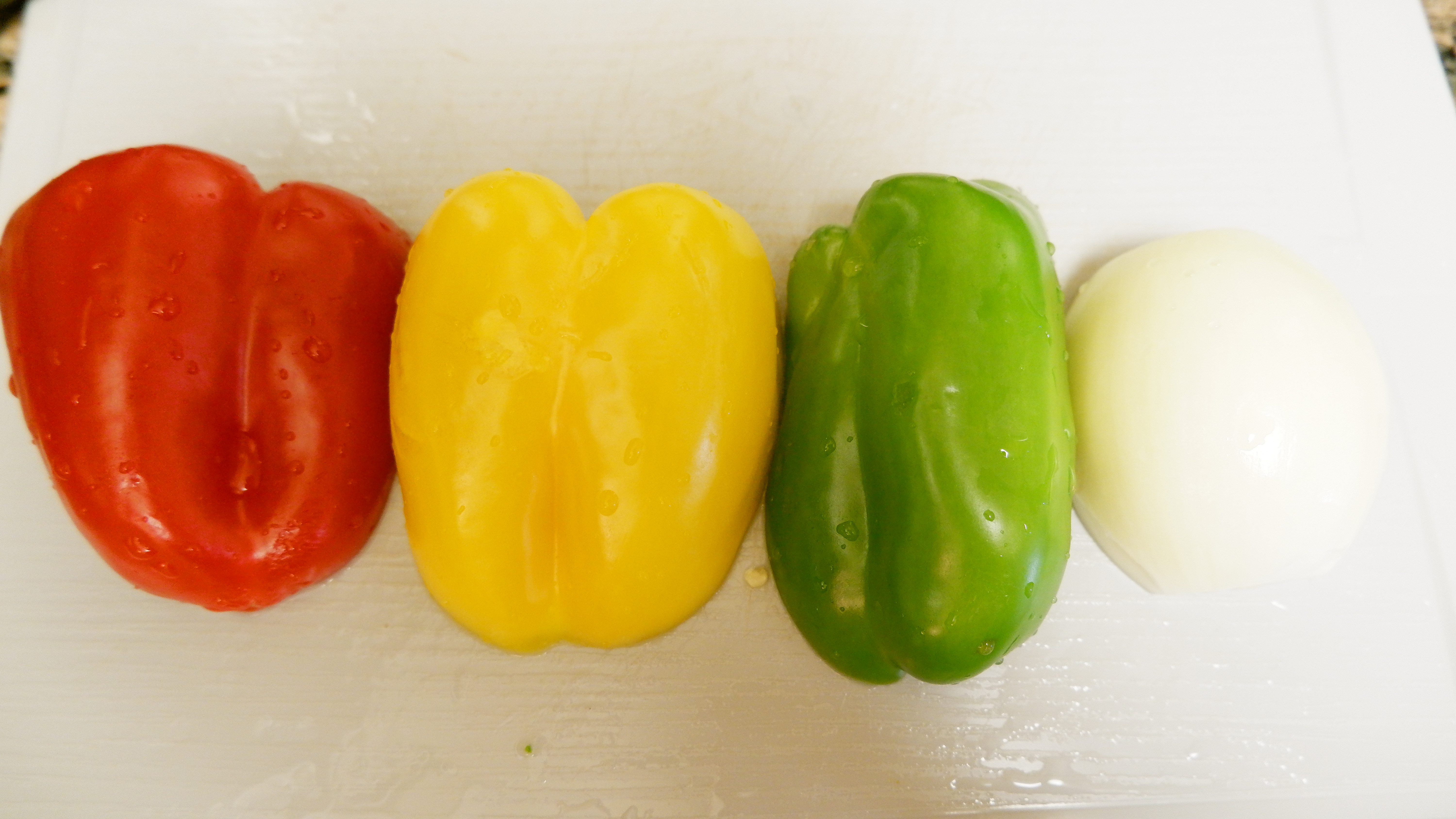 3. 피망 1개반 , 양파 1/2개는 손질 후 채를 썰어 주세요!