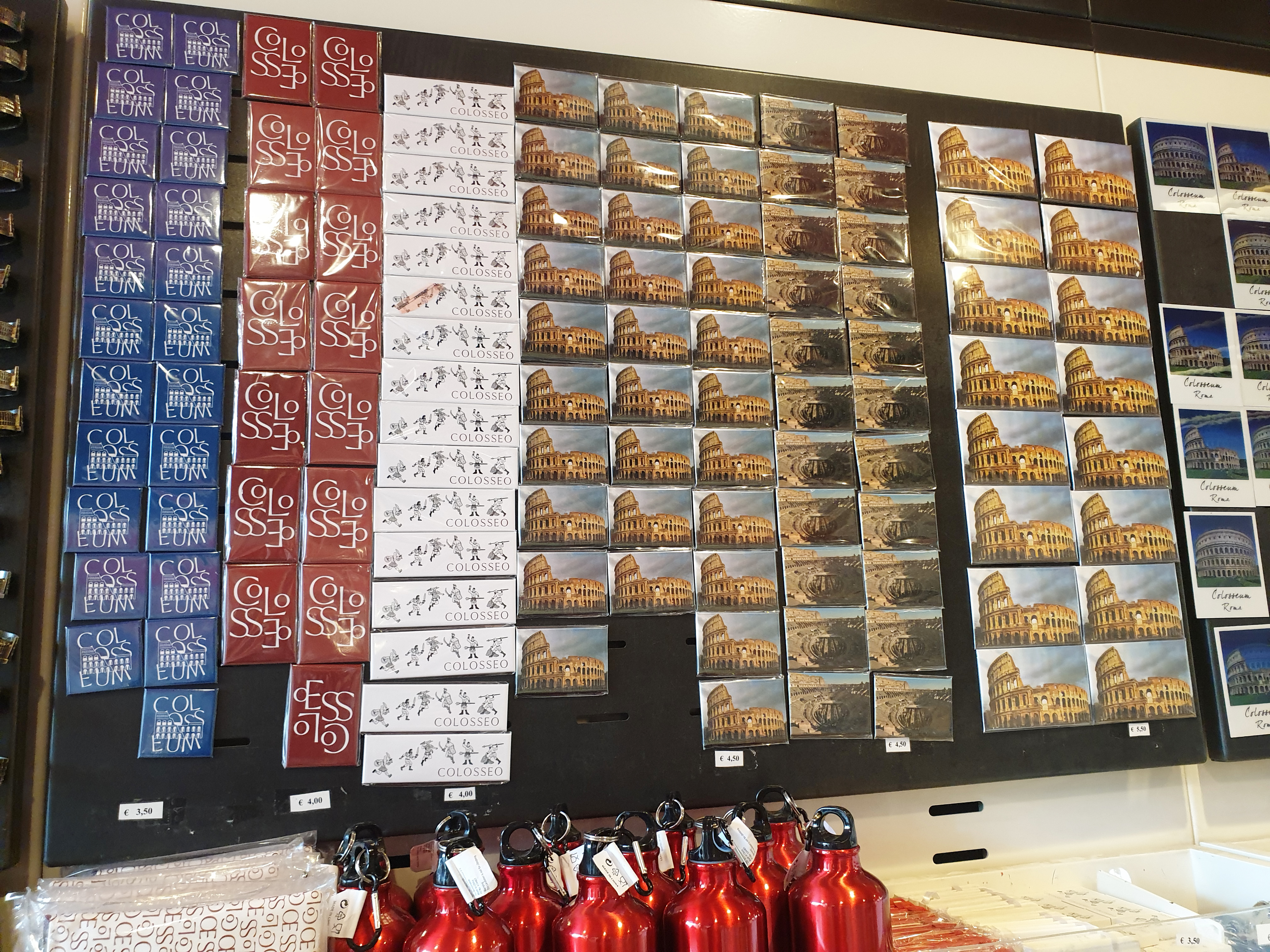 콜로세움온지 10분 채 안됐는데 벌써 나가는 문이라.. 처음에는 너무 당황했어요 ㅋㅋ 그리고 1층에는 기념품 상점이 있답니다. 이곳 마그넷은 4.50유로.. 여기서 기념품으로 마그넷을 구매했는데 밖에서 똑같은 마그넷을 1유로에 판매하고 있더라고요... 하.. 하.. 기념품은 시내에서 사시는 것은 추천...